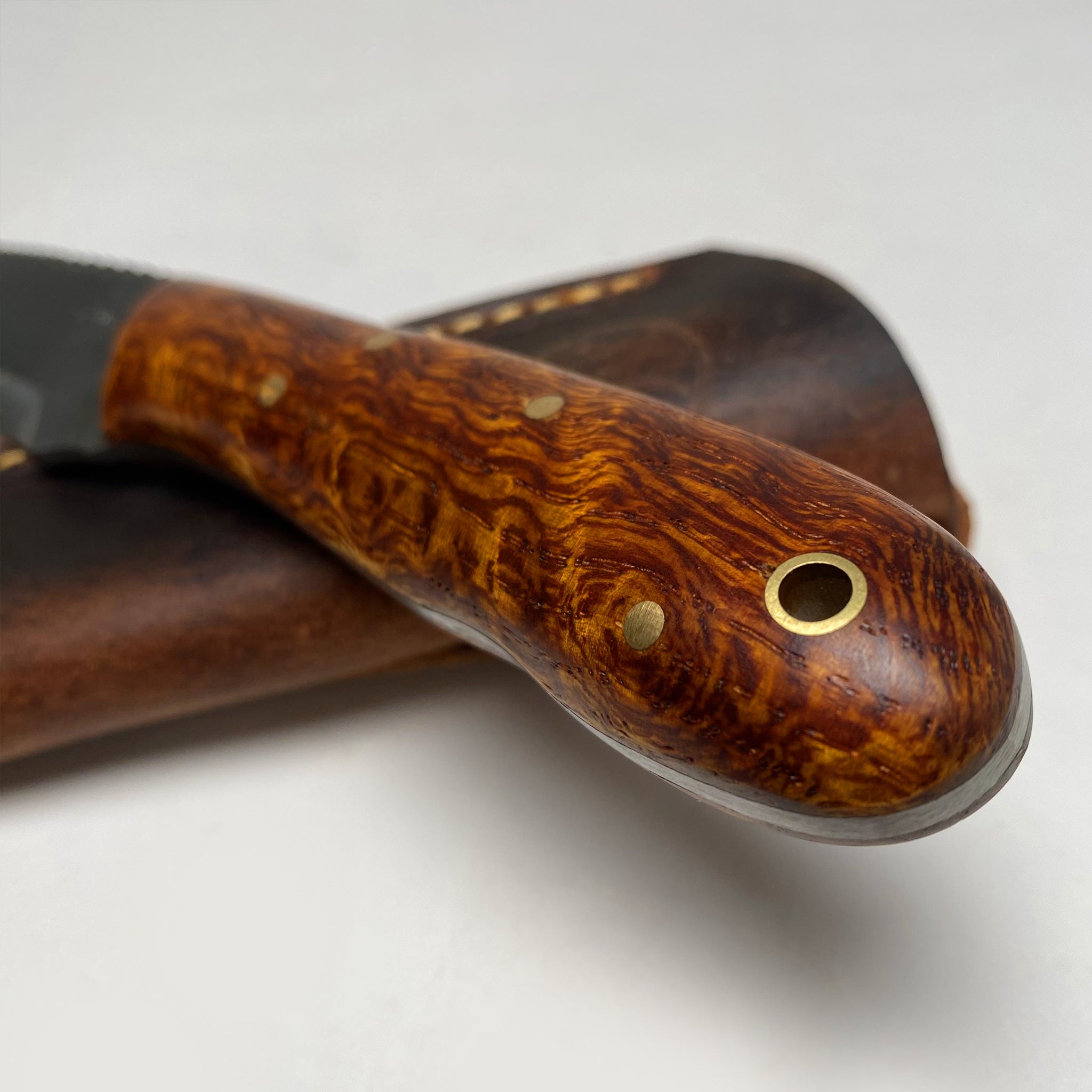 The Whitefish Bay is Woody’s rendition of a French style colonial trade knife. If you’re looking for a knife with unique traditional appeal, the Whitefish Bay will serve well for generations. It features native hardwood scales and a 1095 high carbon tool steel blade heat-treated and tempered in the Woody Shop.