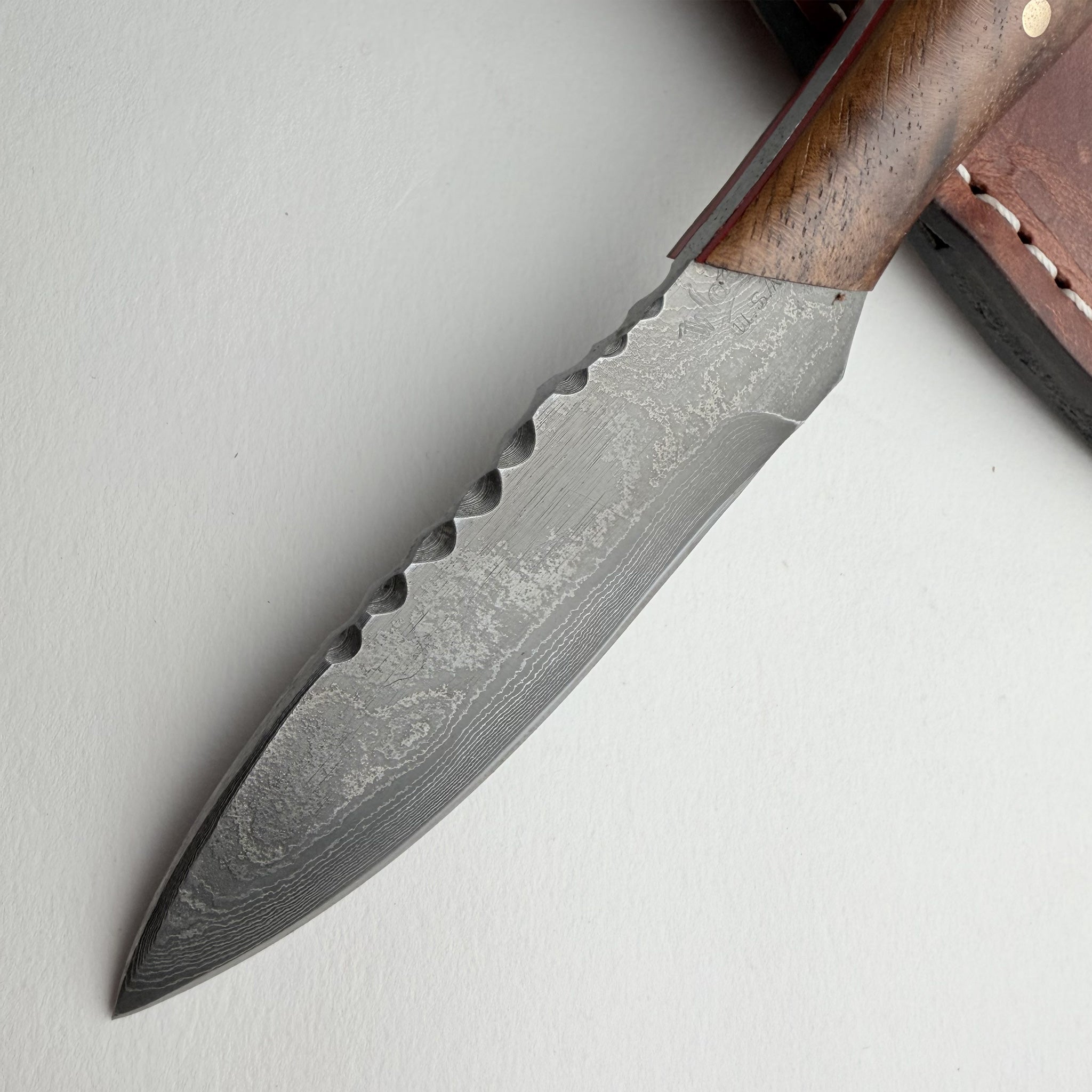 You’ll sure carry this one of a kind resurrection from the archives with pride wherever you venture . Observe the intricacies and organic nature of this hard working blade, study the interwoven tool steel and nickel and you’ll realize that maybe a blade can have a soul of sorts. Explore the possibilities of a journey to a faraway deserted island and then try to explain it all to your brothers around the hunt camp flames. Yes, it’s that kind of knife. Probably heirloom destined. My guess.