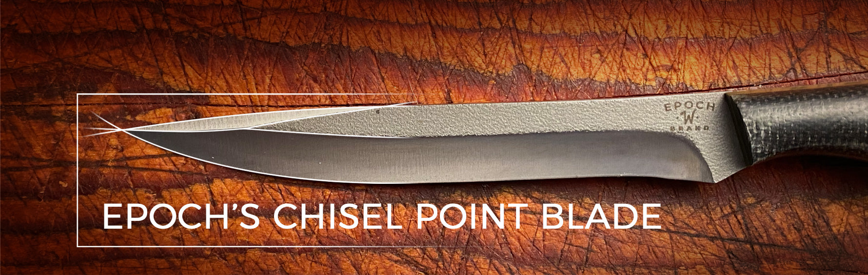 “Woody” took a unique approach when it came to the blade design and edge geometry on the new “Epoch” line of knives. The challenge: create a blade with delicate control while having enough backbone to accommodate heavier jobs. Many designs, re-designs and prototypes later the EPOCH “chisel point” blade was born. As they say, this blade is all it’s sliced up to be. The scalpel-like, chisel point allows for delicate surgical work like slicing and prepping. The Chisel Point affords precise penetrating power. All this in a much heavier blade than those normally found in paring and slicing knives.