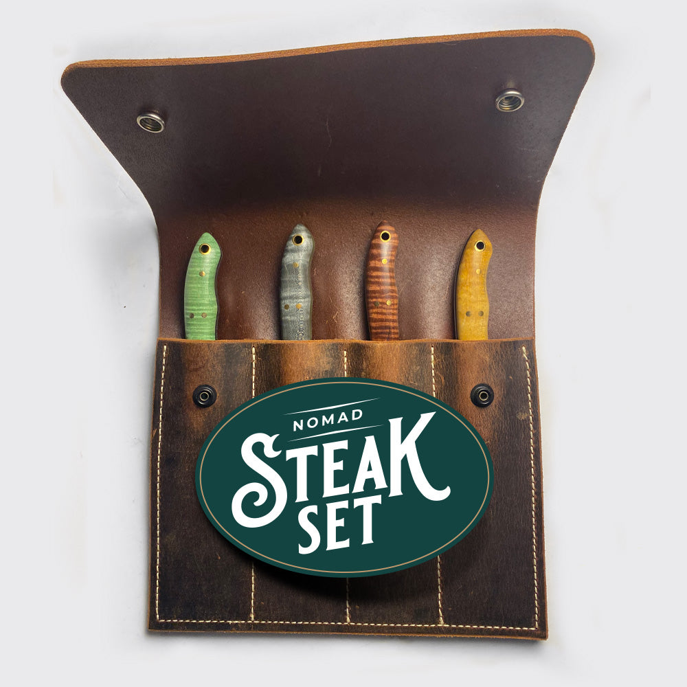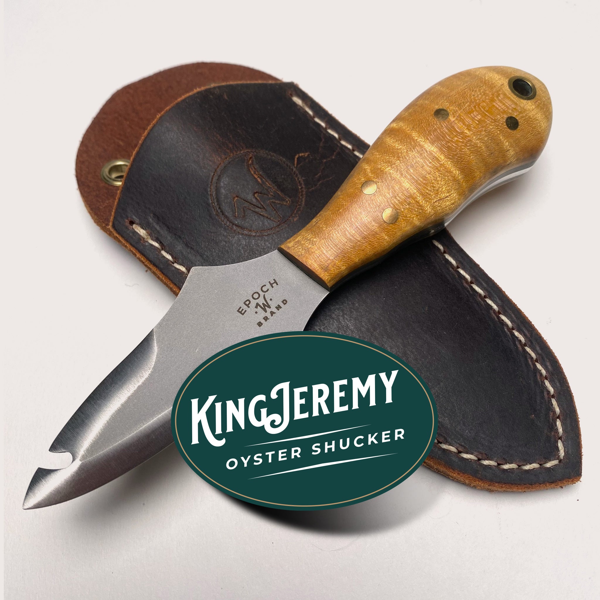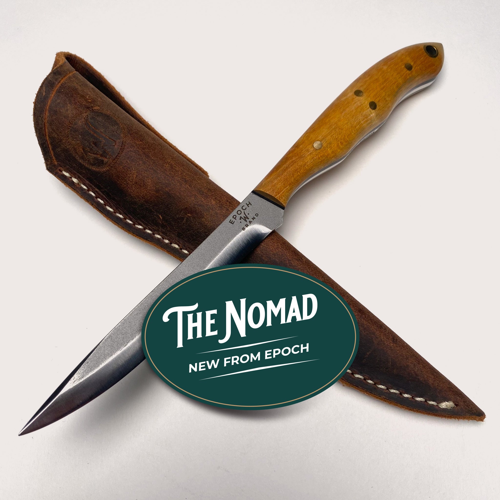 Every EPOCH knife gets delivered in its own personal, top-grain leather sheath hand-made by Lonnie Hyatt of Hyatt Leather Works, right down the road from The Woody Shop.