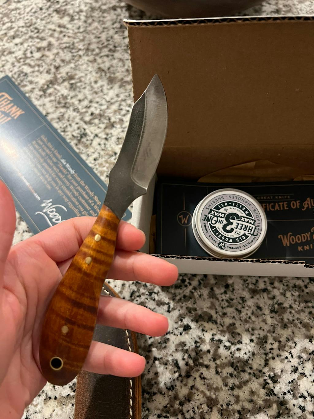 Great product. I will order more knives from Woody.